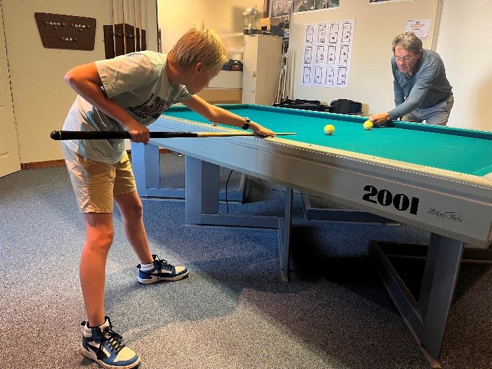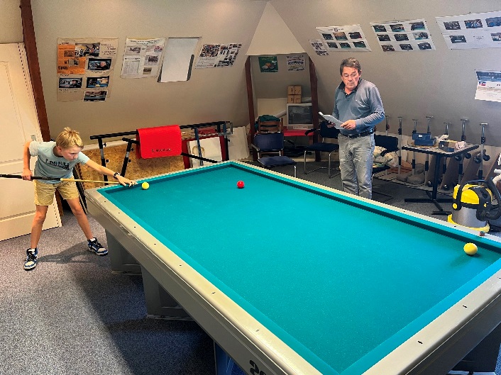Voilà qui va faire baisser la moyenne d’âge des adhérents, Paul 13 ans licence N° « 192369X » vient de s’inscrire au CEP Billard et a commencé son apprentissage du billard avec Christophe.